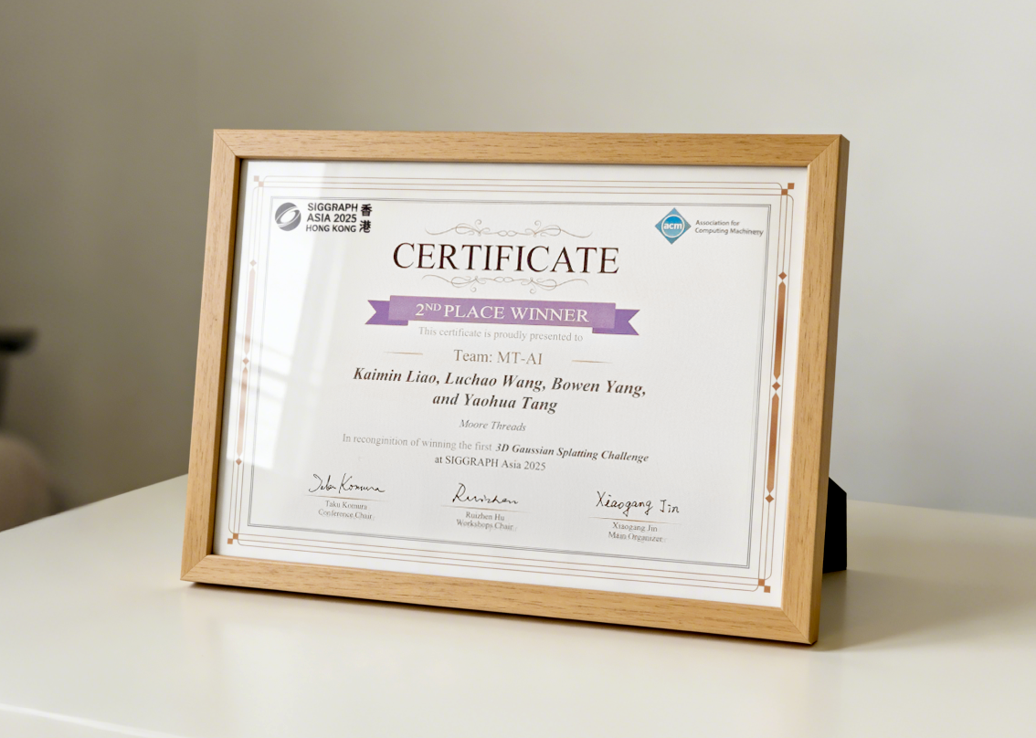 【环球网财经综合报道】2025年12月17日,在香港举行的全球图形学领域备受瞩目的顶级学术盛会 SIGGRAPH Asia 2025上,摩尔线程在3D Gaussian Splatting Reconstruction Challenge(3DGS 重建挑战赛)中凭借自研技术LiteGS出色的算法实力和软硬件协同优化能力,斩获大赛银奖,再次证明摩尔线程在新一代图形渲染技术上的深度积累与学术界的高度认可。