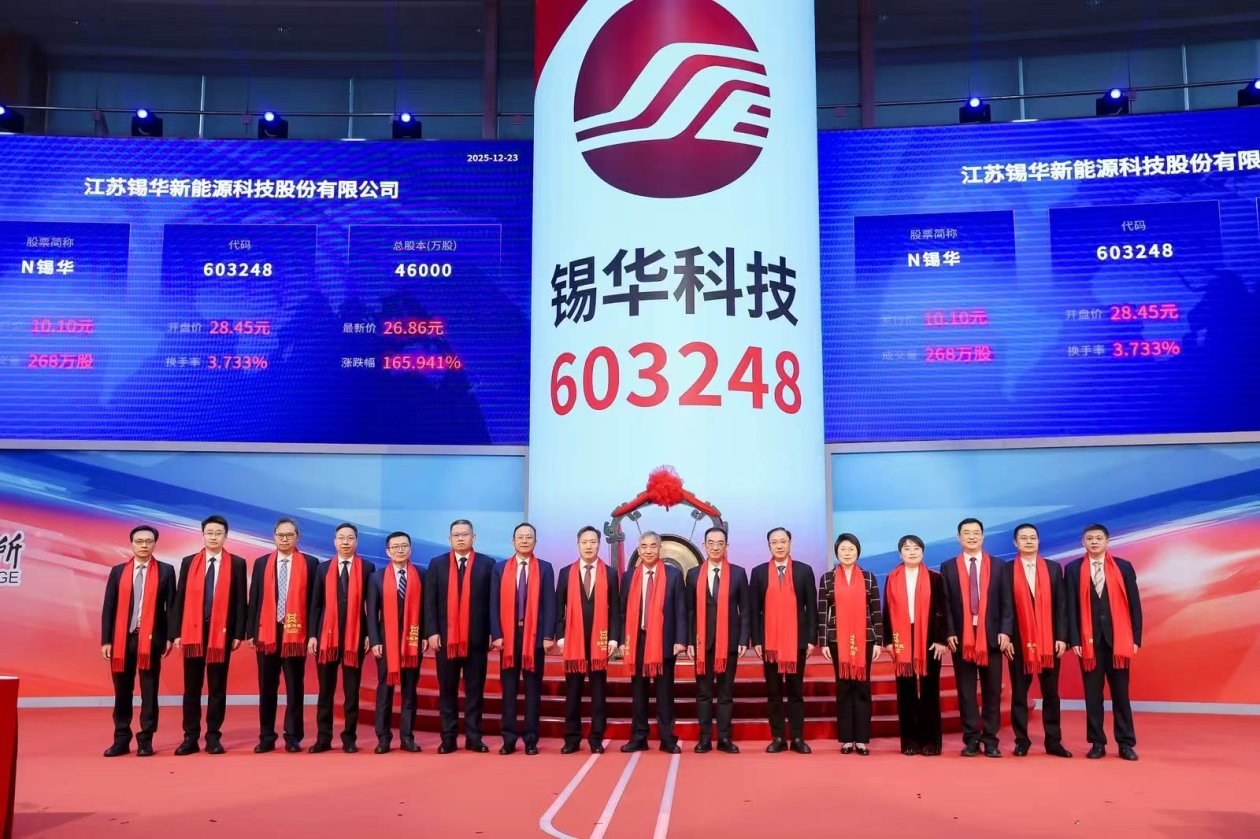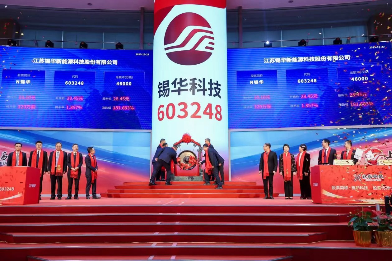 【环球网财经综合报道】2025年12月23日,江苏锡华新能源科技股份有限公司(以下简称“锡华科技”)正式在上交所主板上市。发行价10.10元/股,首日开盘价达到28.45元/股,涨幅高达181.68%。