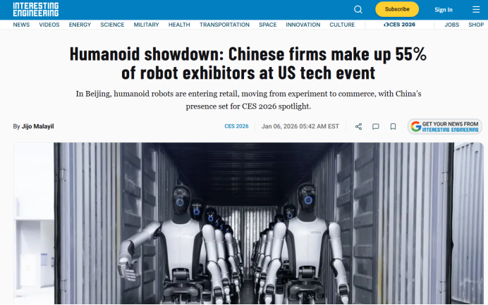 这种分野在应用层展现得淋漓尽致。在人形机器人领域,美国波士顿动力的全新电动Atlas以其惊人的运动性能,上演了一场技术极限的“科幻秀”。相比之下,根据CES官方信息,在全部38家相关参展商中,有21家来自中国,占比超过55%。以宇树、智元、傅利叶为代表的中国军团集体亮相,展示的重点是核心部件的自研能力与在物流、制造等真实场景中的解决方案成熟度。