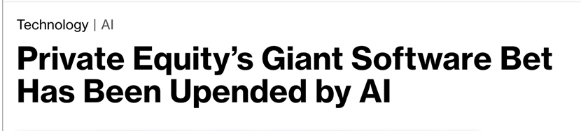 AI带来的行业颠覆,已逐步转化为实实在在的市场风险与经营困境。2025年,外包公司KronosNet和Foundever因投资者对AI冲击的关注加剧陷入经营困境,债务交易价格跌至不良水平;McAfee、ION Platform Investment Group等软件企业的债券价格也大幅下跌,CVC Capital Partners的信贷部门更是接管了始终未能找到买家的呼叫中心支持公司Sabio Group。黑石集团的乔恩·格雷直言,当下市场关注的泡沫风险并非核心,最大的风险实则是AI带来的颠覆性风险,如同上世纪90年代互联网出现对黄页行业的冲击,行业可能迎来一夜之间的巨变。私募市场中,负债高企的软件企业纷纷寻求延期还款,Edmentum、Foundever等企业的贷款估值被知名贷款机构大幅下调,部分甚至进入不良水平。